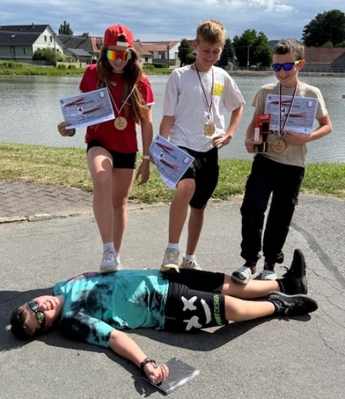 Pět závodníků Bzuk teamu se poslední prázdninový víkend zúčastnilo Mistrovství ČR sekce M. V sobotu ve třídě Mini Std junioři brali první tři místa členové Bzuk teamu v pořadí Janick, Michal a Amálie. V třídě Mini Exp byla Amálie druhá a Janick třetí. V seniorech zvítězil Jan Sršeň (Mini Std). To znamená z osmi nasazených lodí šest umístění na bedně. Nádhera. Blahopřejeme. Neděle už tolik úspěšná nebyla. V seniorech si sice Jan obhájil zlato, ale junioři se promíchali. Amálie Dostálová porazila všechny závodníky (mini Exp) a získala zlato. Ve třídě mini Std na stupně vítězů dosáhli kluci. Janick Sršeň byl stříbrný a Michal Dostál bronzový. Zdeňka Dostálová jako jediná členka Bzuk teamu na medaili nedosáhla, ale zasloužila by si jí jako mechanik, protože připravovala 5 lodí po oba dny jako mechanik. Z přiložených fotek vyplývá, že si to naši junioři užívali s plnou parádou. Výsledky budou později na Sekci M nebo na stránkách SMČR.